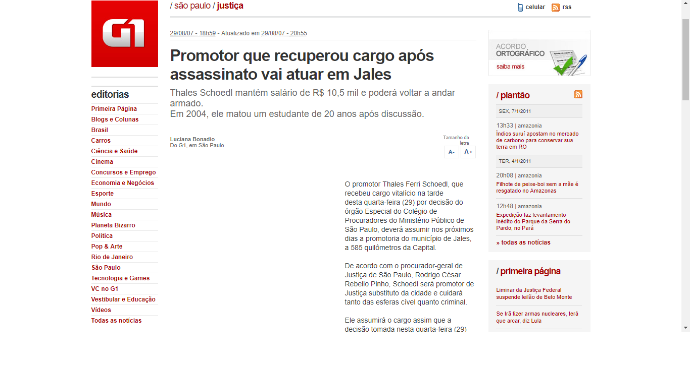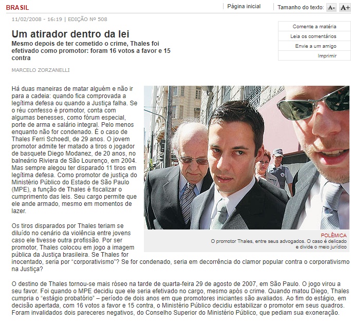 Afinal de contas, o país está tão exposto à violência constante, que a simples divulgação de um crime bárbaro não basta para vender no concorrido mercado da mídia. É necessário que se adicione uma certa dose de ares de impunidade, porque a população se comove mais com a impunidade do que com a própria barbárie do crime.
